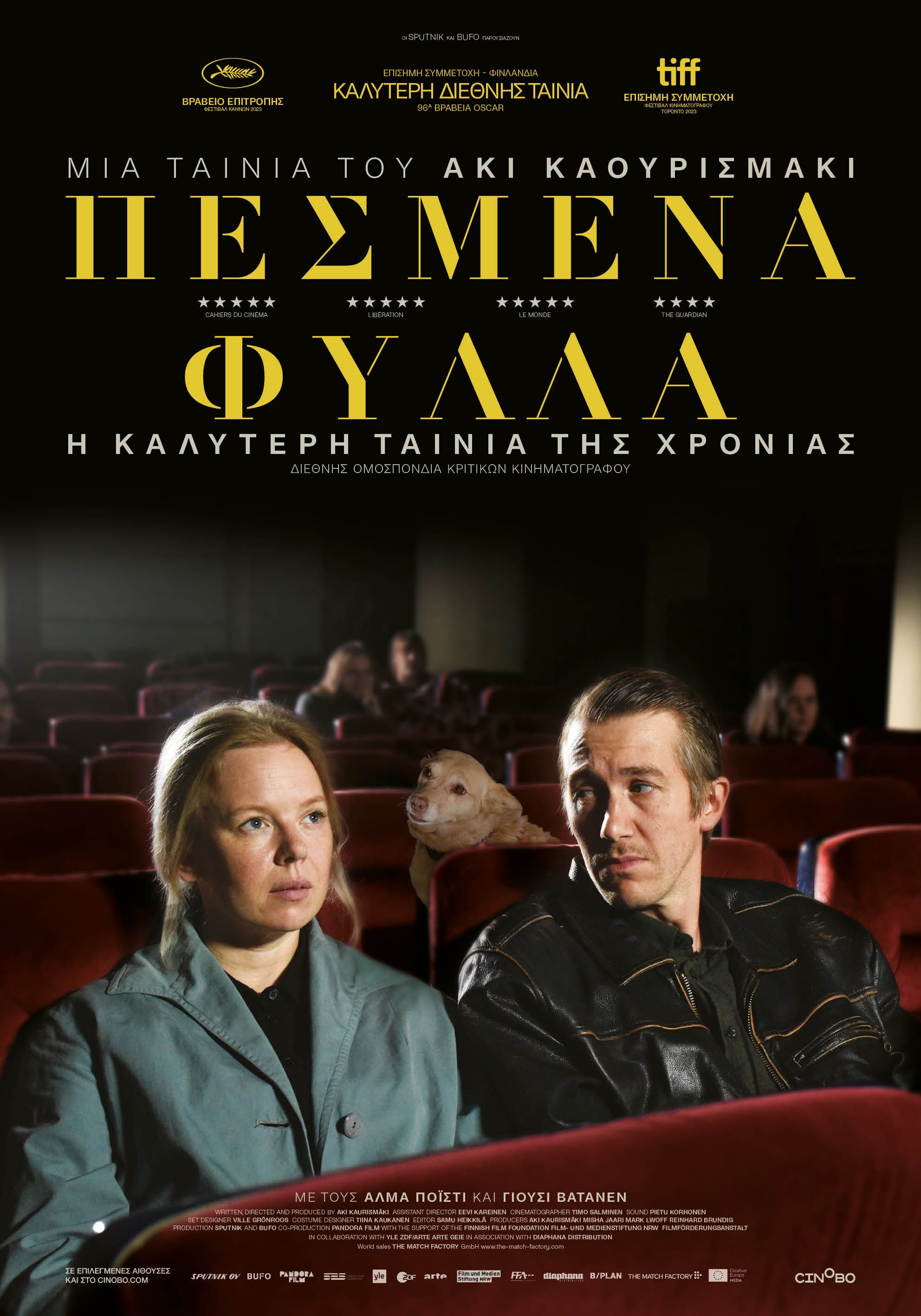 Μια γυναίκα και ένας άντρας, που ζουν και εργάζονται στα όρια της επιβίωσης, συναντιούνται ξανά και ξανά στους δρόμους του παγωμένου Ελσίνκι. Η κακοτυχία που κυβερνά τις ζωές τους φαίνεται να ορίζει και το μέλλον της σχέσης τους, όπως όμως συμβαίνει συχνά στο γλυκόπικρο σύμπαν του Άκι Καουρισμάκι, η ελπίδα και η τρυφερότητα καταφέρνουν να χωρέσουν ακόμα και στις πιο δύσκολες ζωές. Μια ταινία «που μπορεί να σου ραγίσει την καρδιά και να τη ξαναφτιάξει, χωρίς καν να το πάρεις χαμπάρι», τα Πεσμένα Φύλλα κέρδισαν το Βραβείο Επιτροπής του Φεστιβάλ Καννών και το Βραβείο Fipresci στο Φεστιβάλ του Σαν Σεμπαστιάν.