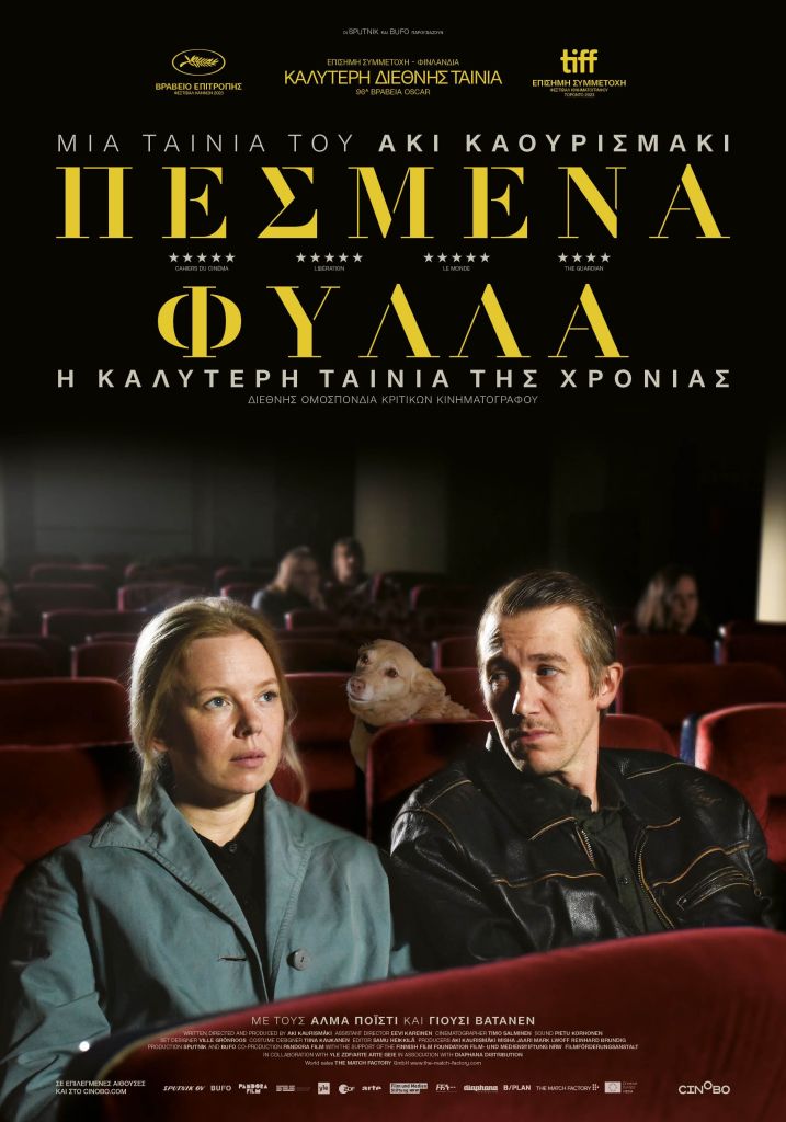 Σαν αεράκι έρχεται και φεύγει και το «Fallen Leaves», όχι μια σπουδαία ταινία, αλλά ένας χαριτωμένος και συγκινητικός χαιρετισμός από τον Ακι Καουρισμάκι, λες για να μας πει ότι είναι καλά, ότι είναι ίδιος κι ότι θα επανέλθει.» (Κριτική της Λήδας Γαλανού για το flix.gr)