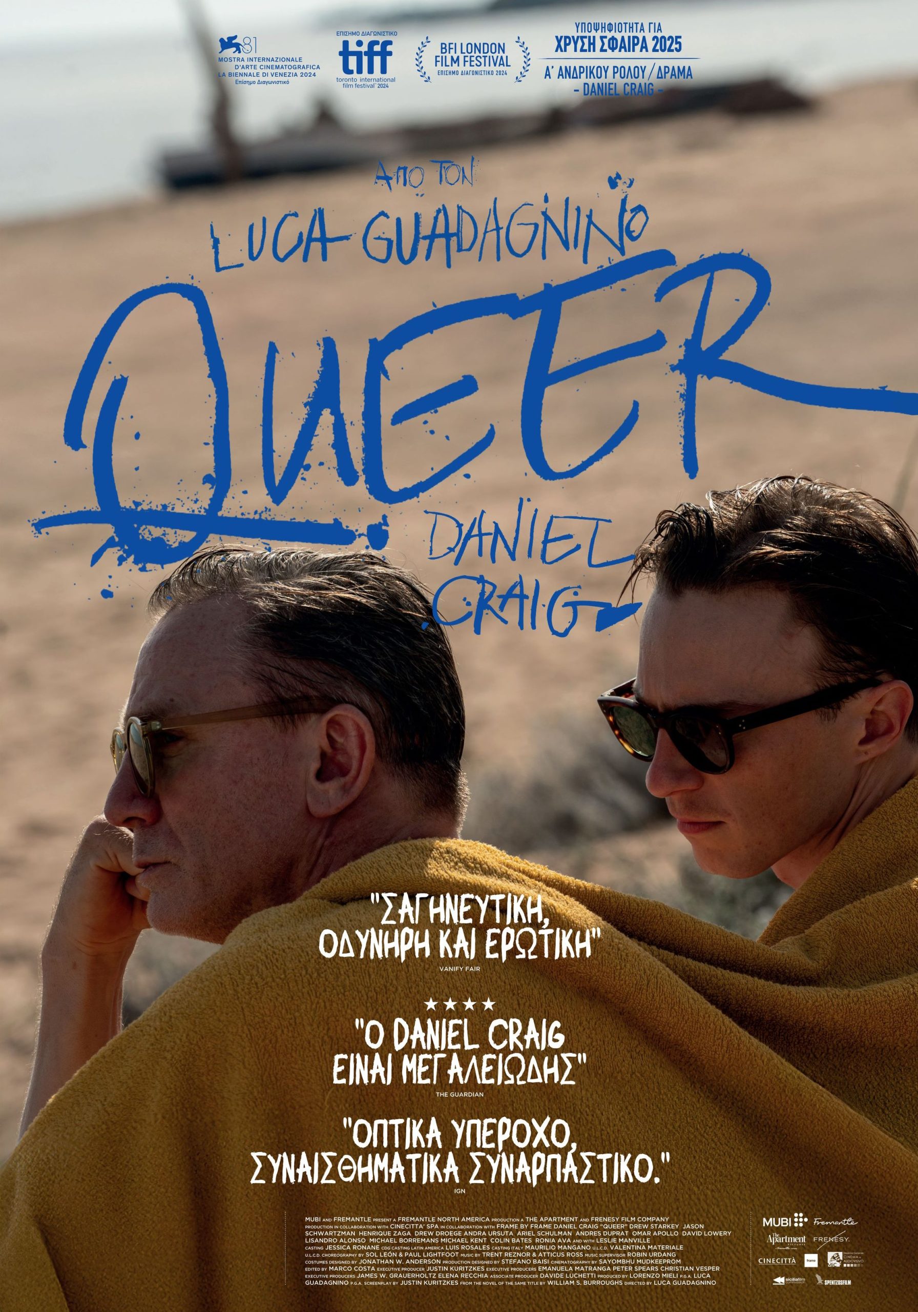 Ο Λούκα Γκουαντανίνο μεταφέρει στη μεγάλη οθόνη το ατελές αλλά εκρηκτικά ειλικρινές μυθιστόρημα του Γουίλιαμ Μπάροουζ, ακολουθώντας τον πρωταγωνιστή του (Daniel Craig) σε μια γεμάτη πόθο, εξάρτηση και αμφιθυμία περιπλάνηση στην Κεντρική Αμερική της δεκαετίας του ’50. Το Queer αποτελεί μια ταινία-ομολογία, μια κατάδυση στην τρωτότητα και την ανάγκη για επαφή, που αναδεικνύει την ένταση μεταξύ μοναξιάς και επιθυμίας, συνεχίζοντας την πορεία του Γκουαντανίνο στη διερεύνηση των πιο μύχιων εκφάνσεων της ανθρώπινης εμπειρίας.