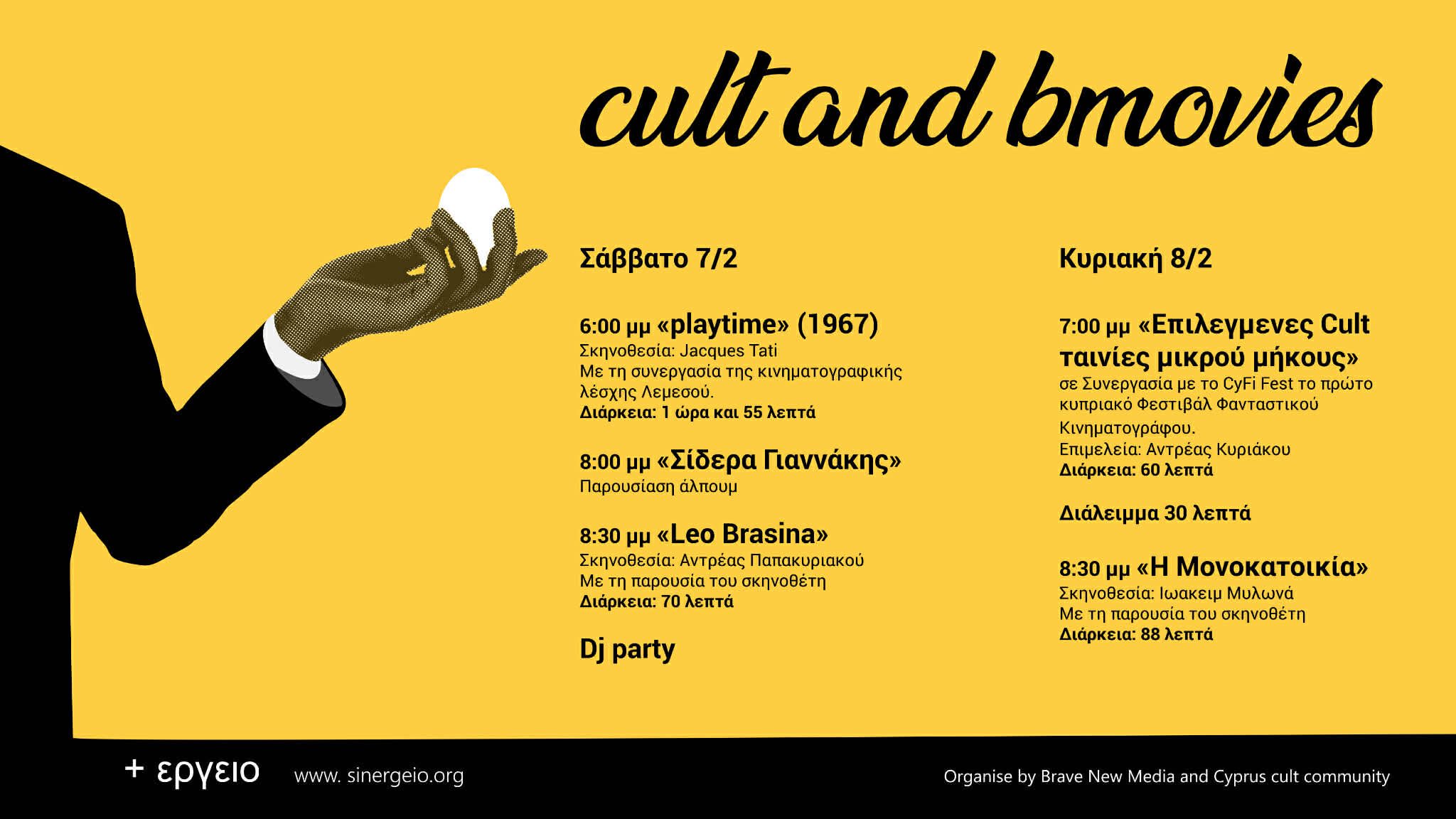 Το Cult & B-Movies Festival αποτελεί μια γιορτή για τους φίλους του cult σινεμά και μια ανοιχτή πρόσκληση σε όσους επιθυμούν να ανακαλύψουν τη γοητεία του κινηματογραφικού .