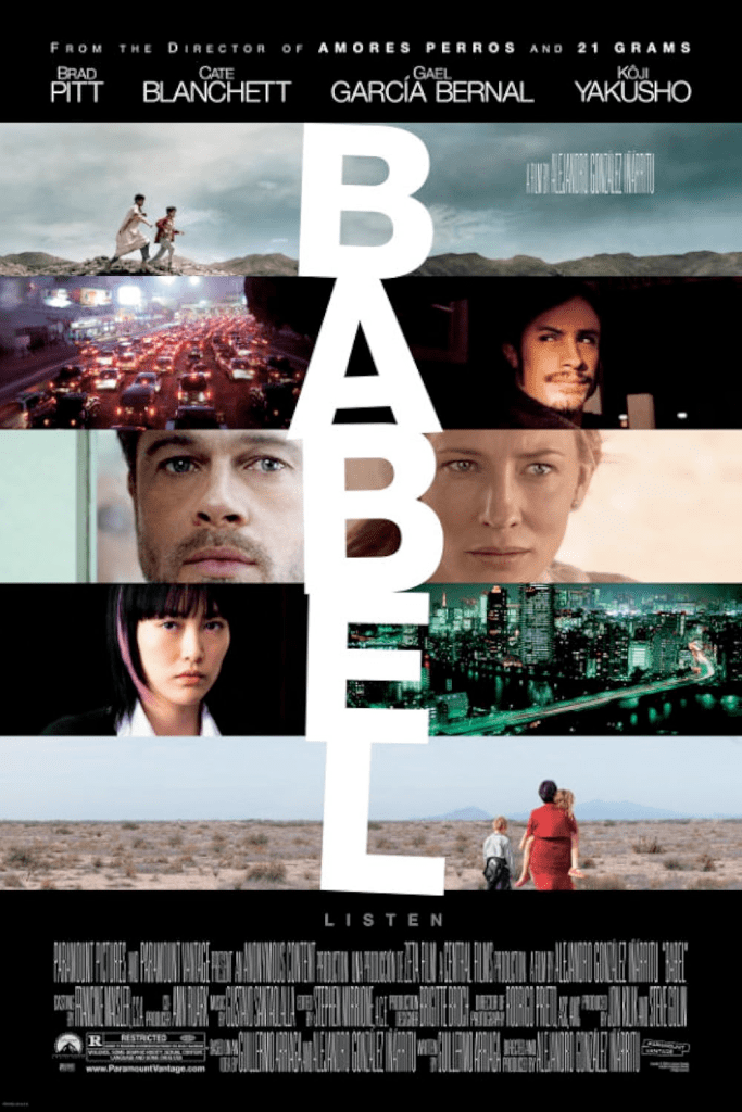 Φαινομενικά αυτόνομες ιστορίες συνυφαίνονται στην ίδια σπονδυλωτή αφήγηση, καθώς το νήμα του Αλεχάντρο Γκονζάλες Ινιαρίτου διατρέχει την Καλιφόρνια, το Μεξικό, το Μαρόκο και το Τόκιο για να συνθέσει μια σύγχρονη, παγκοσμιοποιημένη Βαβέλ, όπου οι πολιτισμικοί και ταξικοί φραγμοί επαναχαράζουν τους διαχωρισμούς μεταξύ των ανθρώπων. Η ταινία του Μεξικανού σκηνοθέτη κέρδισε, μεταξύ άλλων, Βραβείο Σκηνοθεσίας στις Κάννες καθώς και το Όσκαρ Μουσικής.